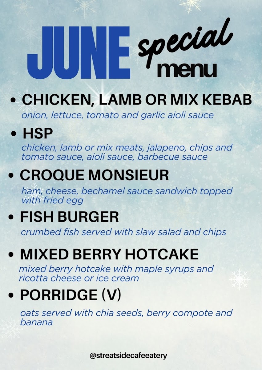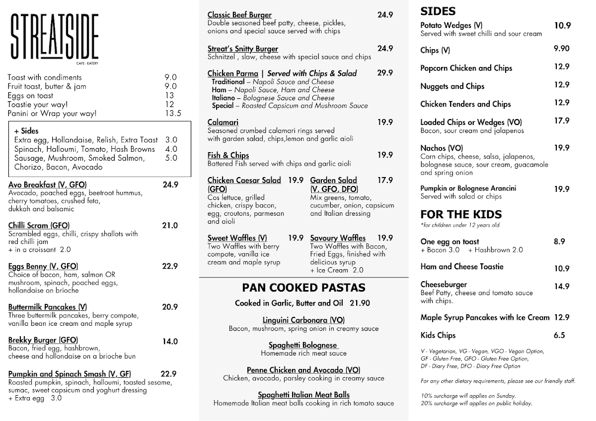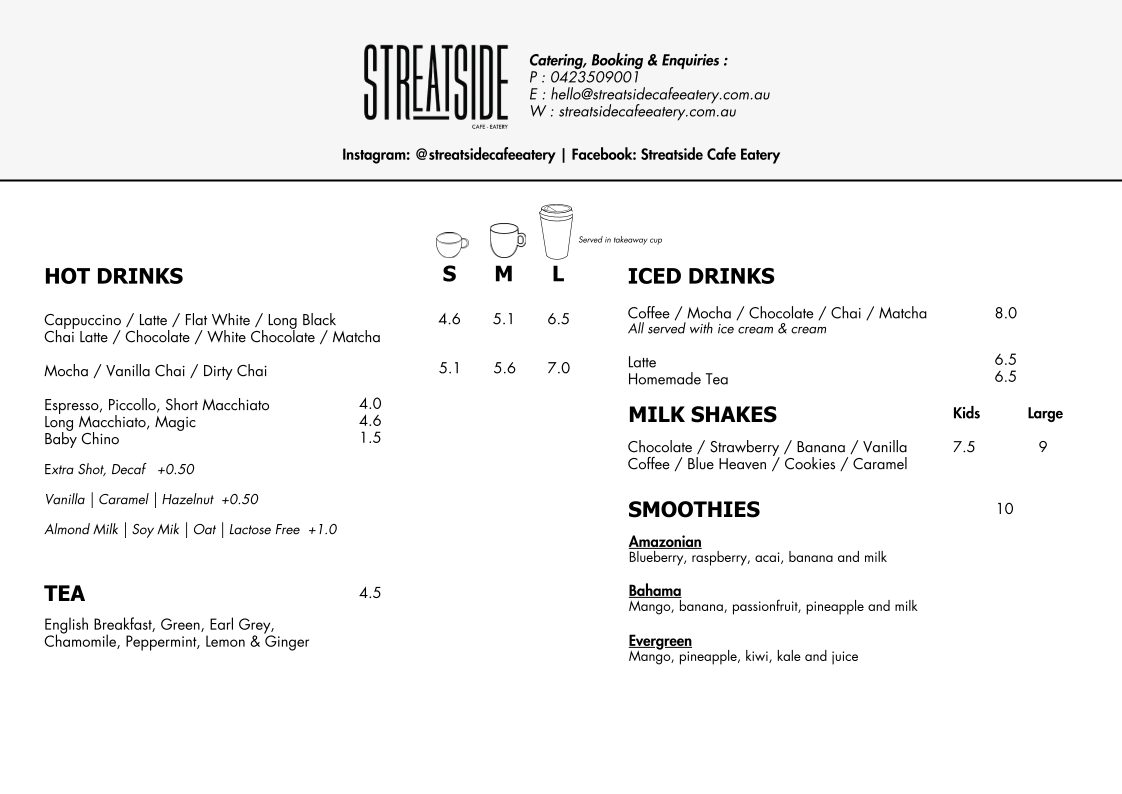 Streatside Cafe & Eatery Menu